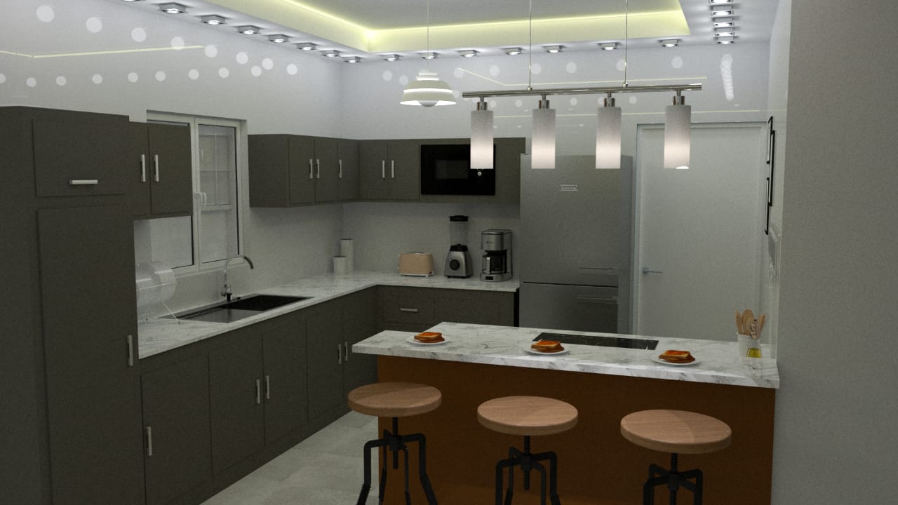 - Techo en yeso con cenefas en sheetrock (sala, comedor, cocina)